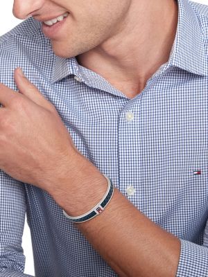 Braided Leather And Stainless Steel Bangle Blue Tommy Hilfiger Very well made.