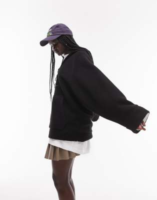 Topshop borg quarter zip fleece hoodie in black Very well made.