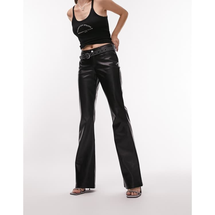 Topshop Faux Leather Flared Pants With Front Slit Hem In Black Very well made.