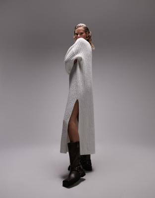 Topshop Knitted Premium Rib Boucle Midi Dress In Cream white Very well made.