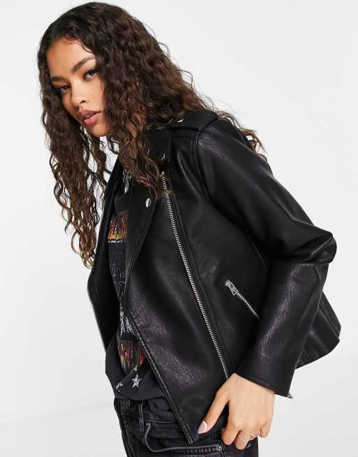 Topshop Petite faux leather classic biker jacket in black ASOS Very well made.