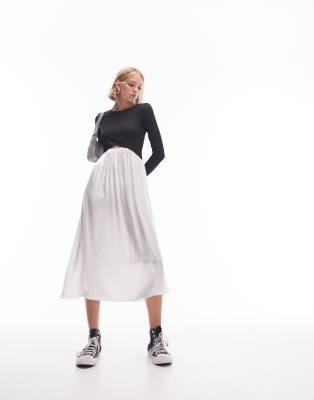 Topshop Petite Jersey And Satin Mix Midi Dress In Black And Ivory Very well made.