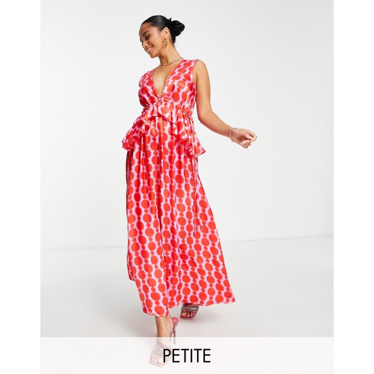 Topshop Petite running spot pinafore maxi dress in pink Very well made.