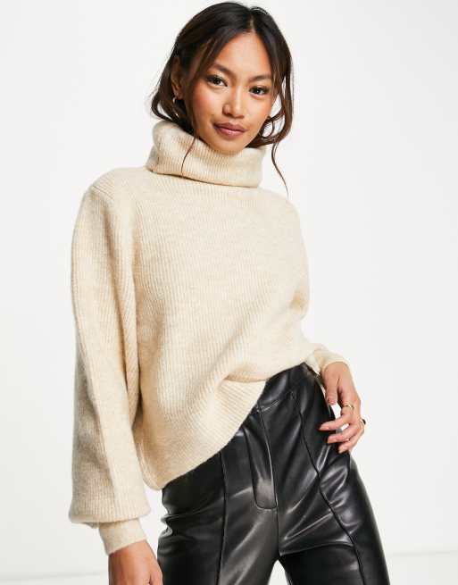 Topshop knitted rib crop jumper with roll neck in sand Very well made.