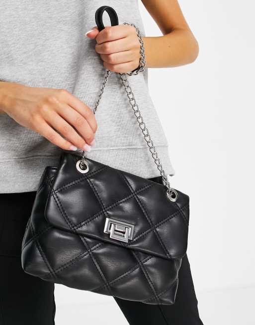 Stradivarius Borsa a tracolla trapuntata nera con manico a catena Very well made.