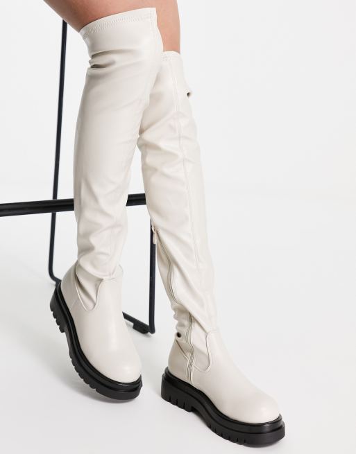 Truffle Collection chucky stretch over the knee boots in cream Very well made.