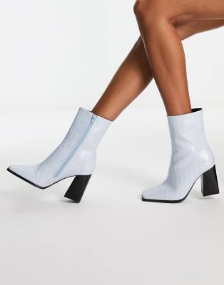 Truffle Collection block heel square toe ankle boots in blue croc Very well made.