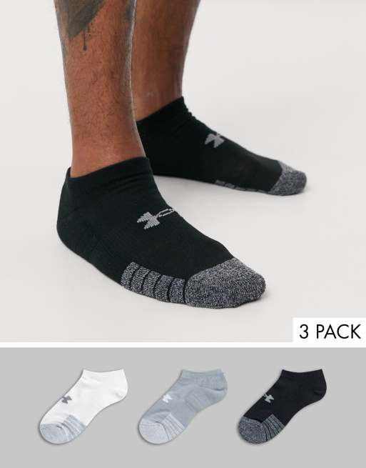 Under Armour Heatgear no show socks in black white grey 3 pack Very well made.