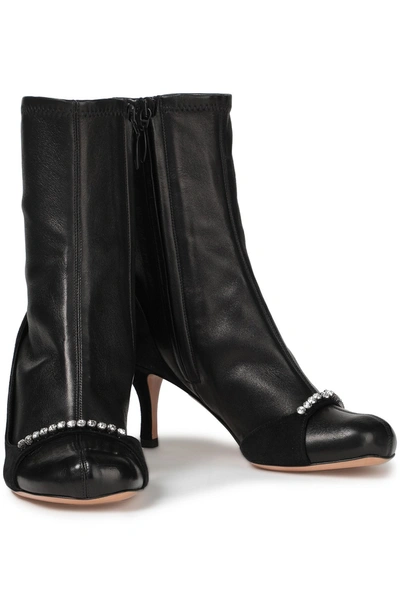 Crystal embellished Stretch leather And Suede Sock Boots In Black Very well made.