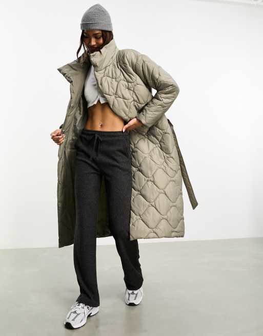 Vero Moda quilted high neck maxi puffer coat in stone Very well made.