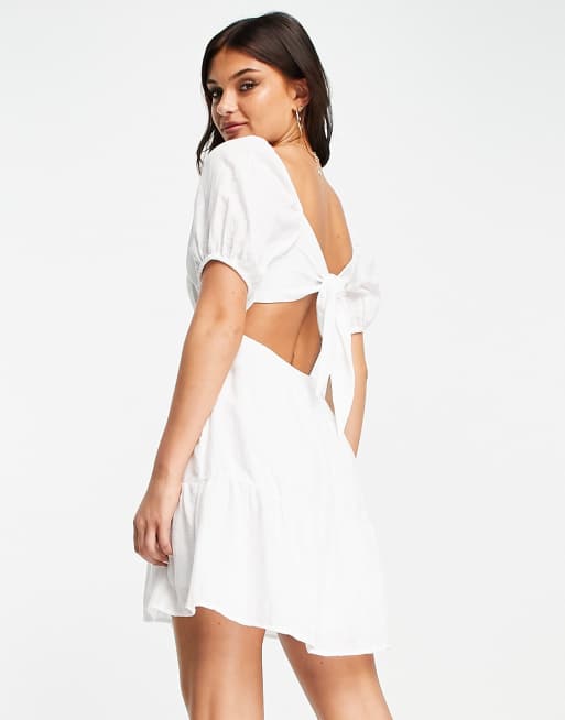 Pull Bear rustic cotton mini smock dress with puff sleeve and tie Very well made.
