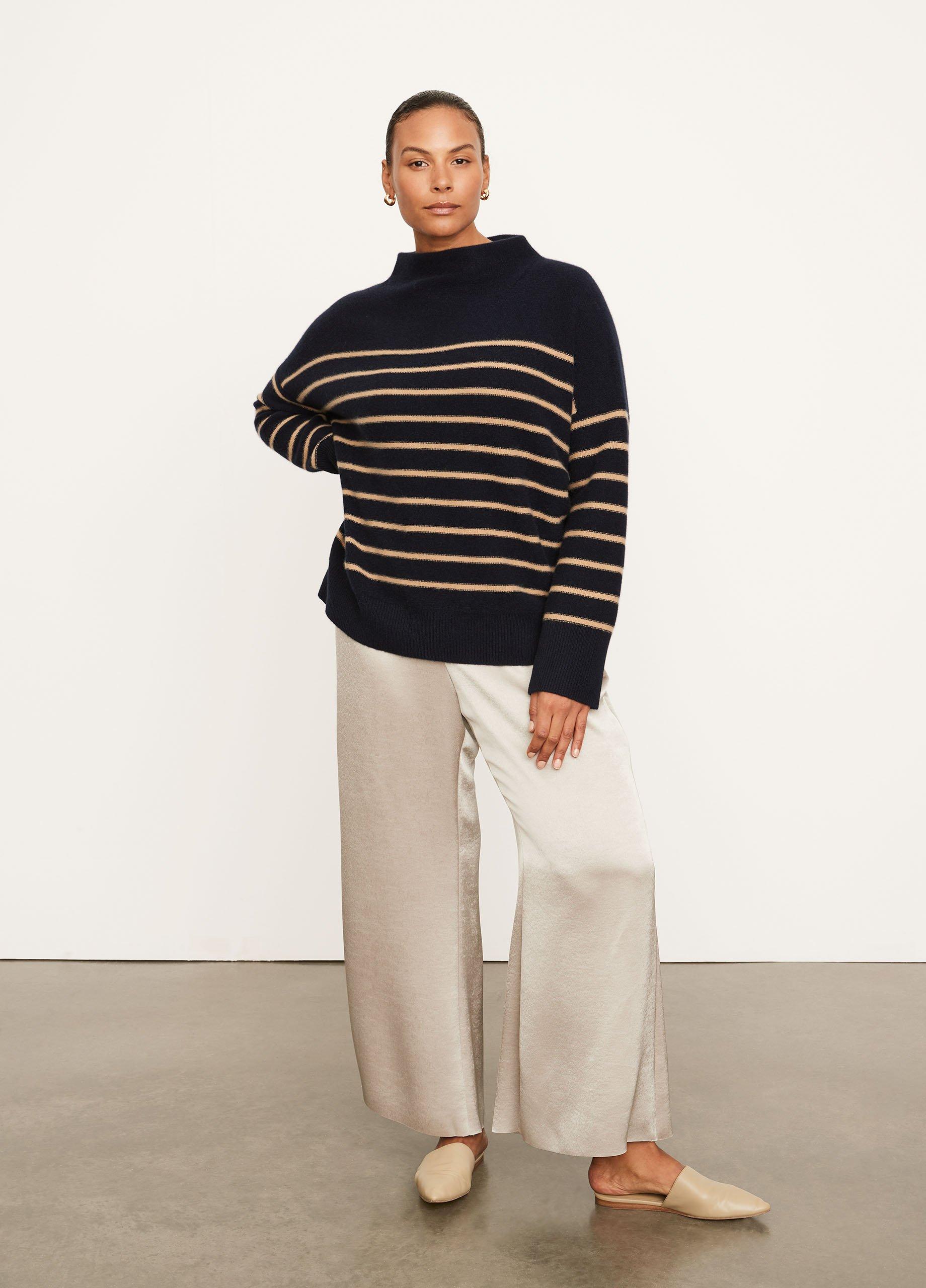 Plush Cashmere Breton Stripe Funnel Neck Sweater in Vince Products Very well made.