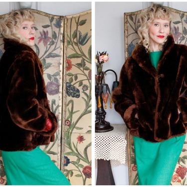Vintage 1940s Dark Brown Mouton Lamb Thigh Length Jacket Vintage Very well made.