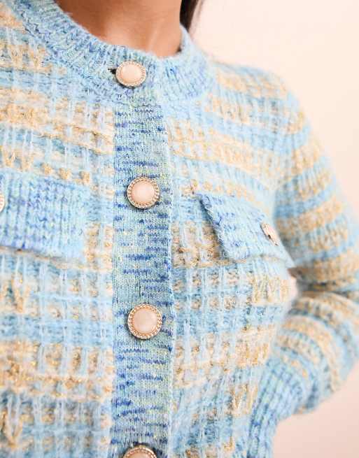 ASOS LUXE knitted cardigan with embellished buttons in blue and Very well made.