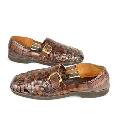 Vintage Mens Huaraches 70 s Leather Woven Huaraches Sandals Very well made.