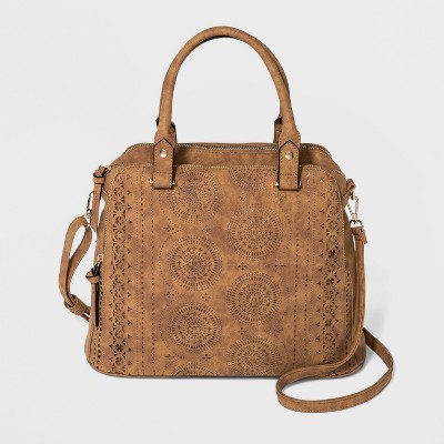 VR By Violet Ray Laser Cut Logan Satchel Handbag Cognac Target Very well made.