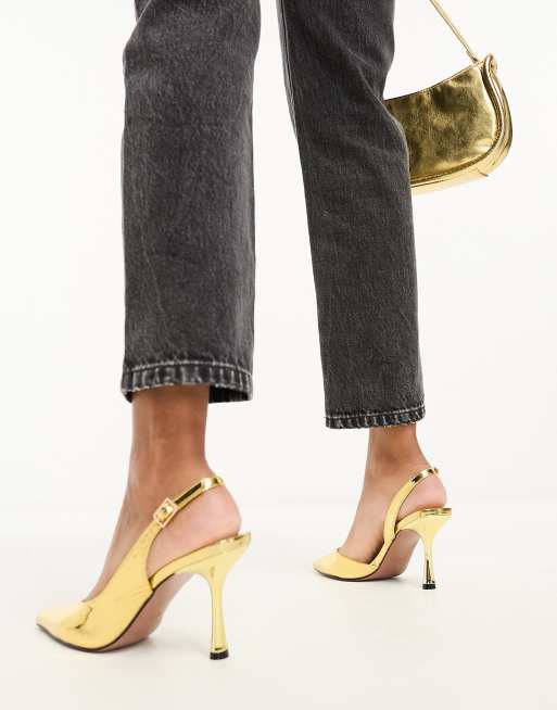 ASOS DESIGN Scarlett Scarpe con tacco medio dorate con fiocco Very well made.