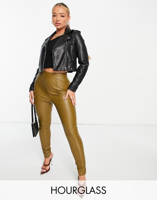 ASOS DESIGN Hourglass pintuck faux leather pants in khaki green ASOS Very well made.