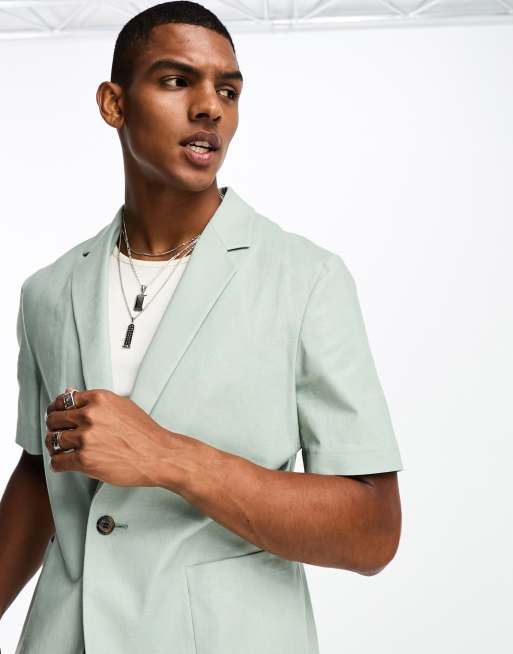 ASOS DESIGN short sleeved linen mix suit jacket in sage ASOS Very well made.