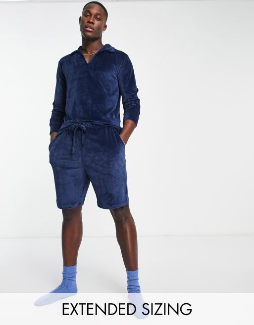 ASOS DESIGN pyjama set in navy ribbed velour with polo long sleeve Very well made.