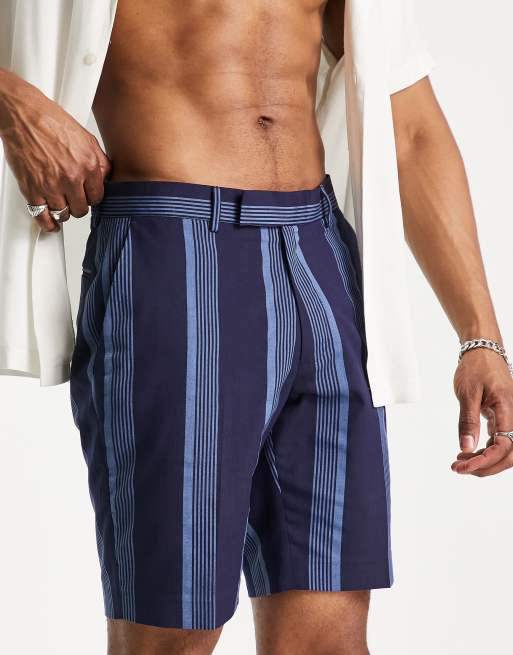 ASOS DESIGN slim smart shorts in wide navy stripe ASOS Very well made.