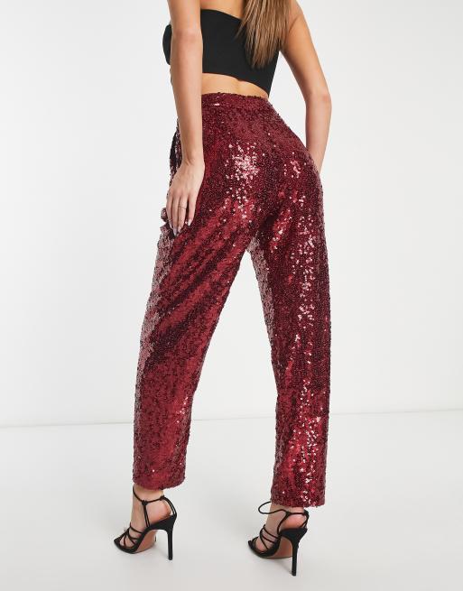 ASOS DESIGN Pantaloni larghi con paillettes rubino Very well made.