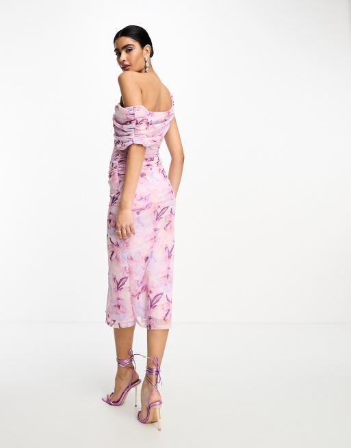 ASOS DESIGN one shoulder twist midi dress in pastel smudge print Very well made.