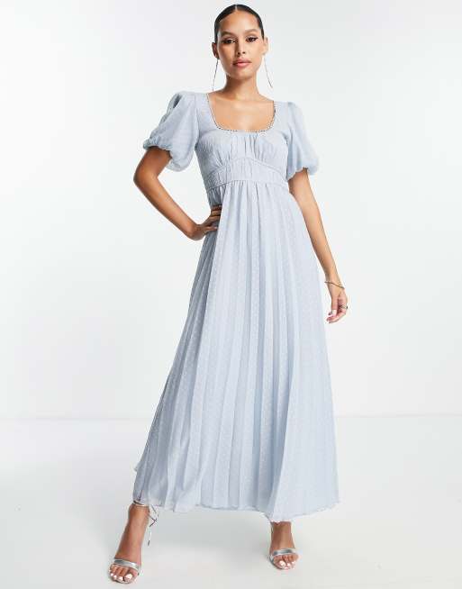ASOS DESIGN v front baby doll pleated embroidered midi dress in Very well made.