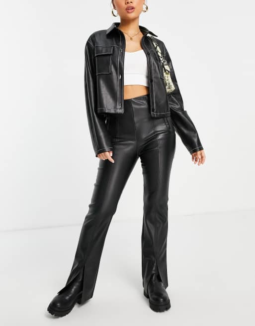 Stradivarius Petite faux leather trousers with split front detail Very well made.