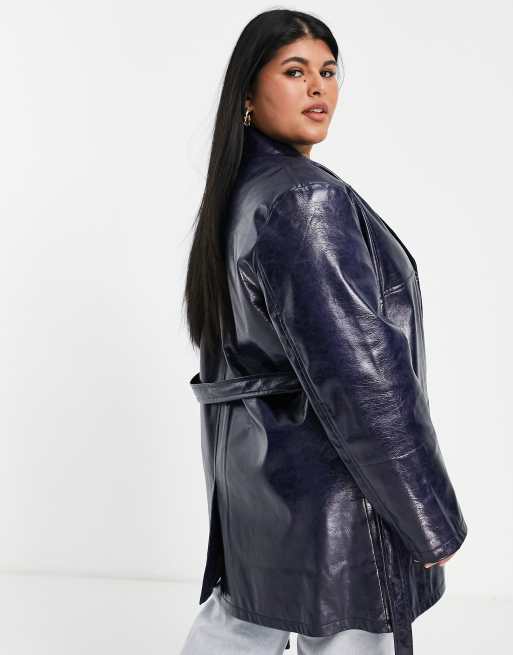 ASOS DESIGN Curve cracked faux leather jacket in dark blue ASOS Very well made.
