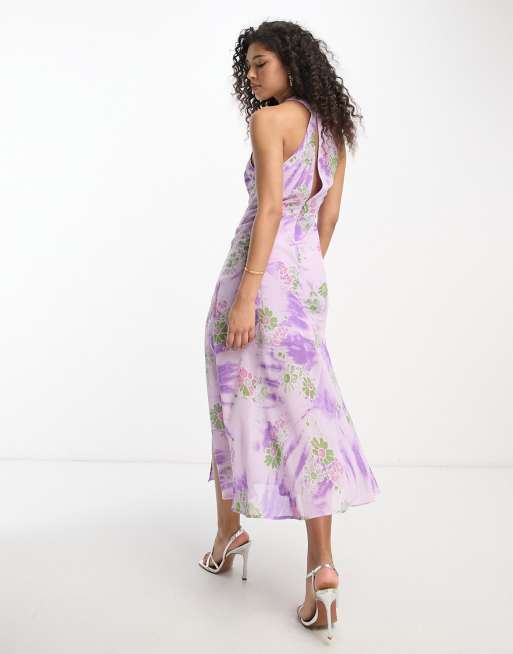 ASOS DESIGN split front halter midi dress in floral tie dye print Very well made.