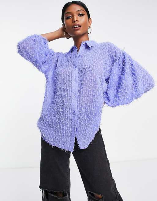 ASOS DESIGN fluffy shirt with volume short sleeve in purple Very well made.
