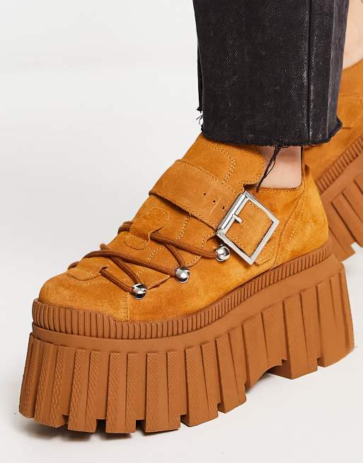 ASOS DESIGN Meg premium suede chunky flat shoes in camel ASOS Very well made.