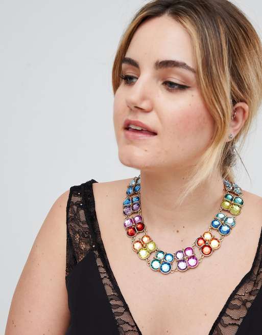 ASOS DESIGN Curve Exclusive statement necklace with MULTICOLOR Very well made.