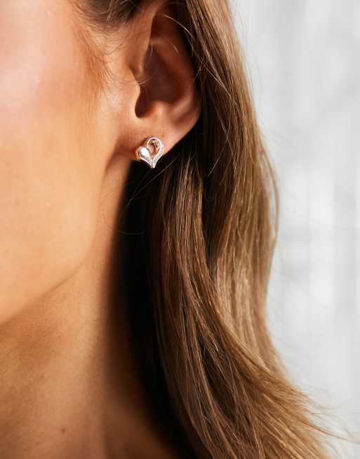 ASOS DESIGN stud earrings with oversized puff heart in silver tone Very well made.