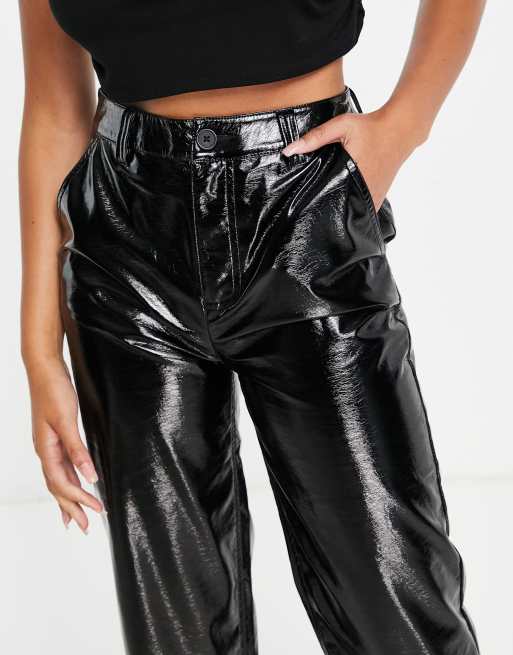Only vinyl high waisted straight leg trousers in black Very well made.