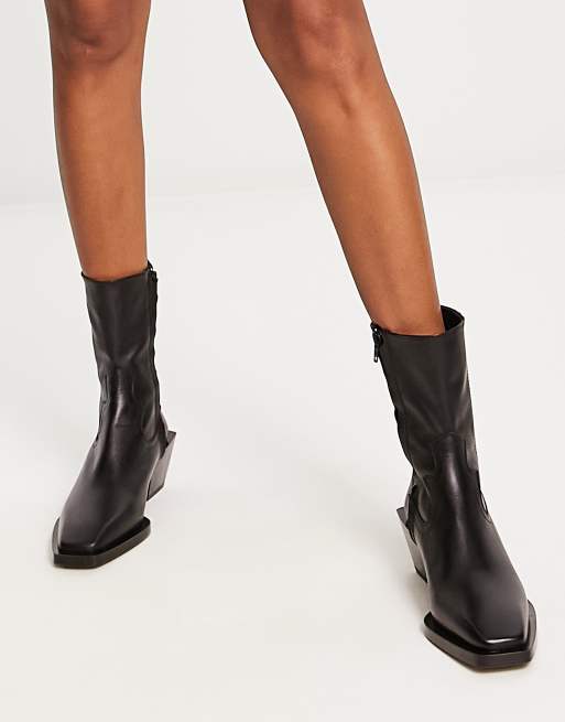ASOS DESIGN Arrow leather western ankle boots in black ASOS Very well made.