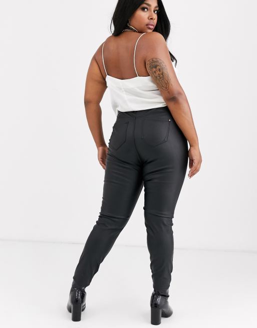 River Island Plus Molly high waisted waxed skinny jeans in black Very well made.