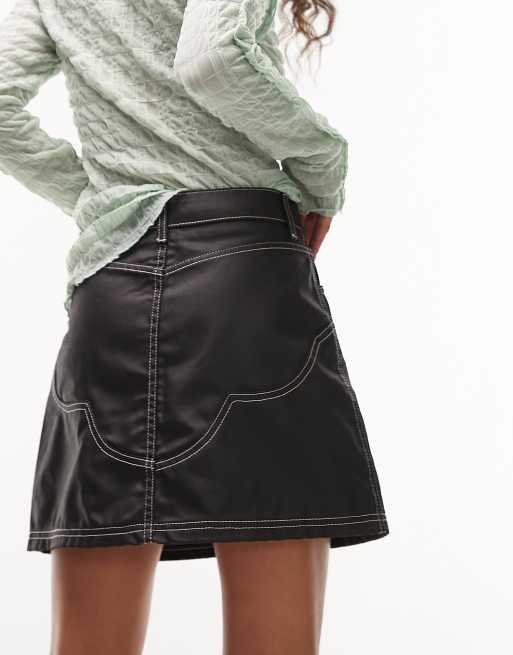 Topshop western denim skirt in coated black Very well made.