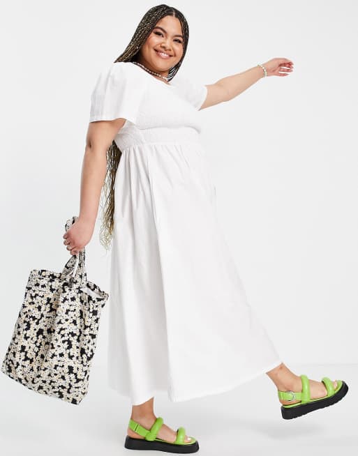 Pieces Curve cotton shirred maxi dress in white WHITE ASOS Very well made.