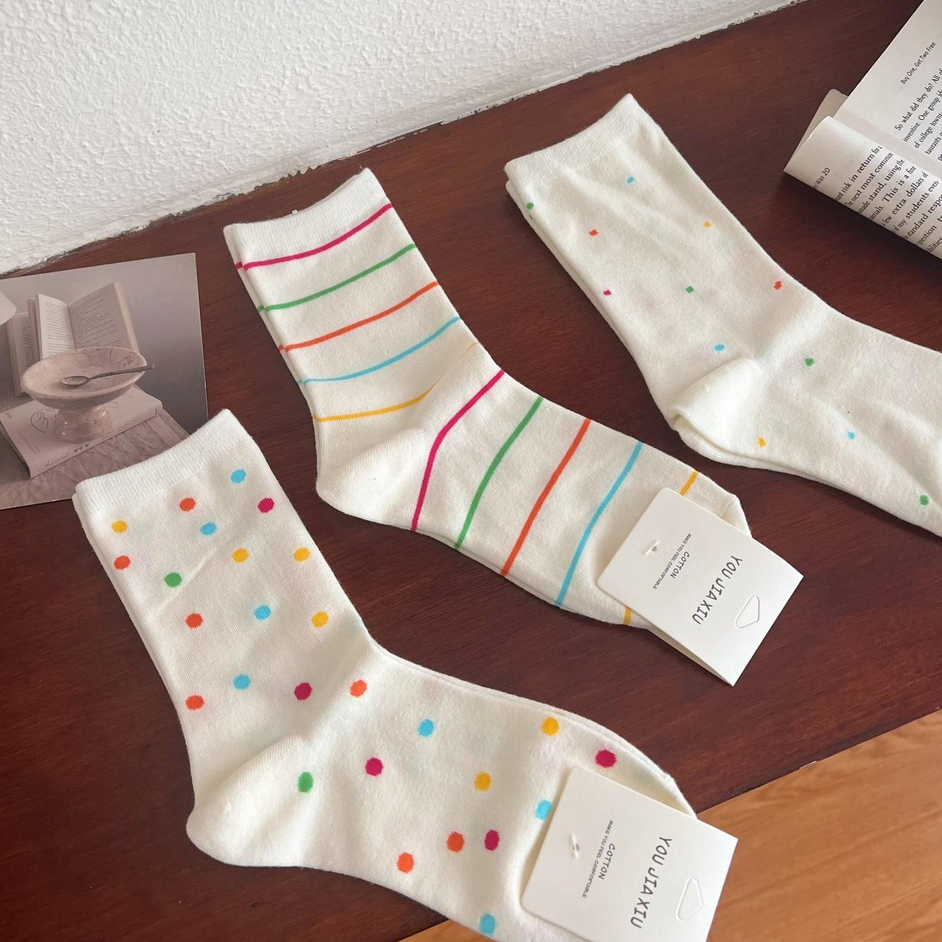 Bfuming Korean Colorful Polka Dot Girls Socks Striped Dot White Very well made.