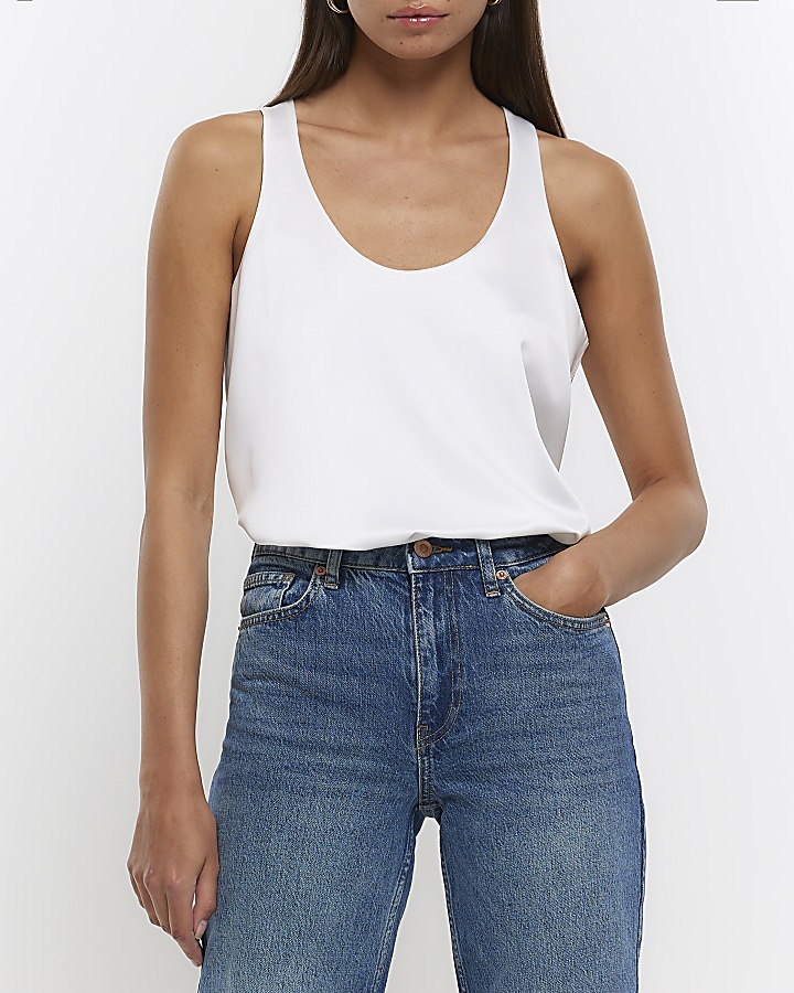 White Racer Scoop Neck Vest Top River Island Very well made.