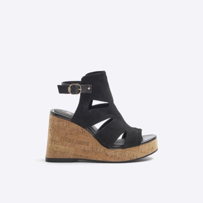 Black wide fit suedette cut out wedge sandals River Island Very well made.
