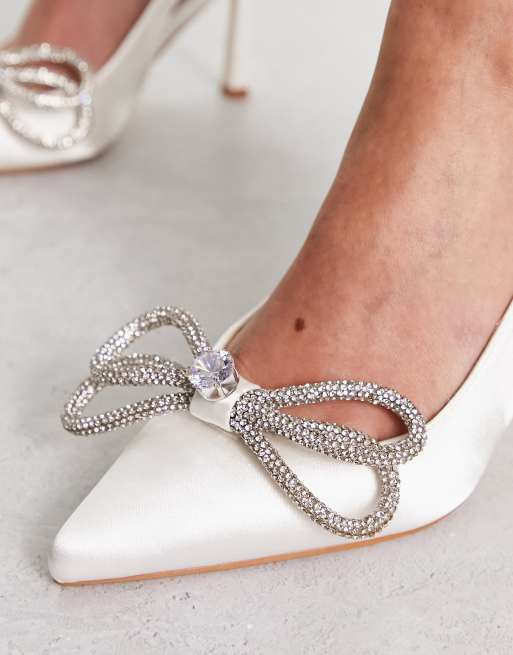 Be Mine Wide Fit Elon mid heel shoes in ivory satin Very well made.