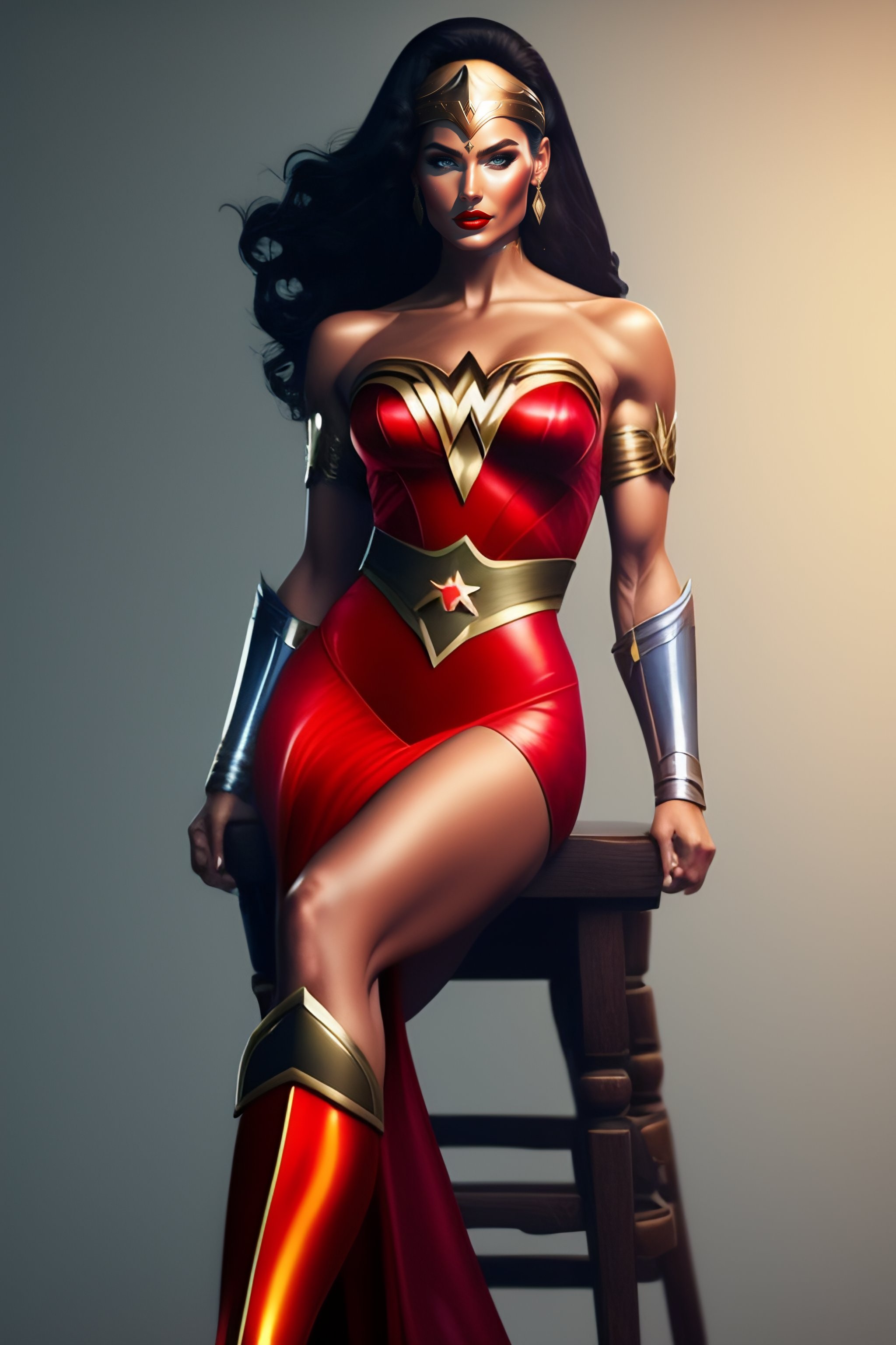 Lexica Wonder woman sitting in chair high heels thigh slit Very well made.
