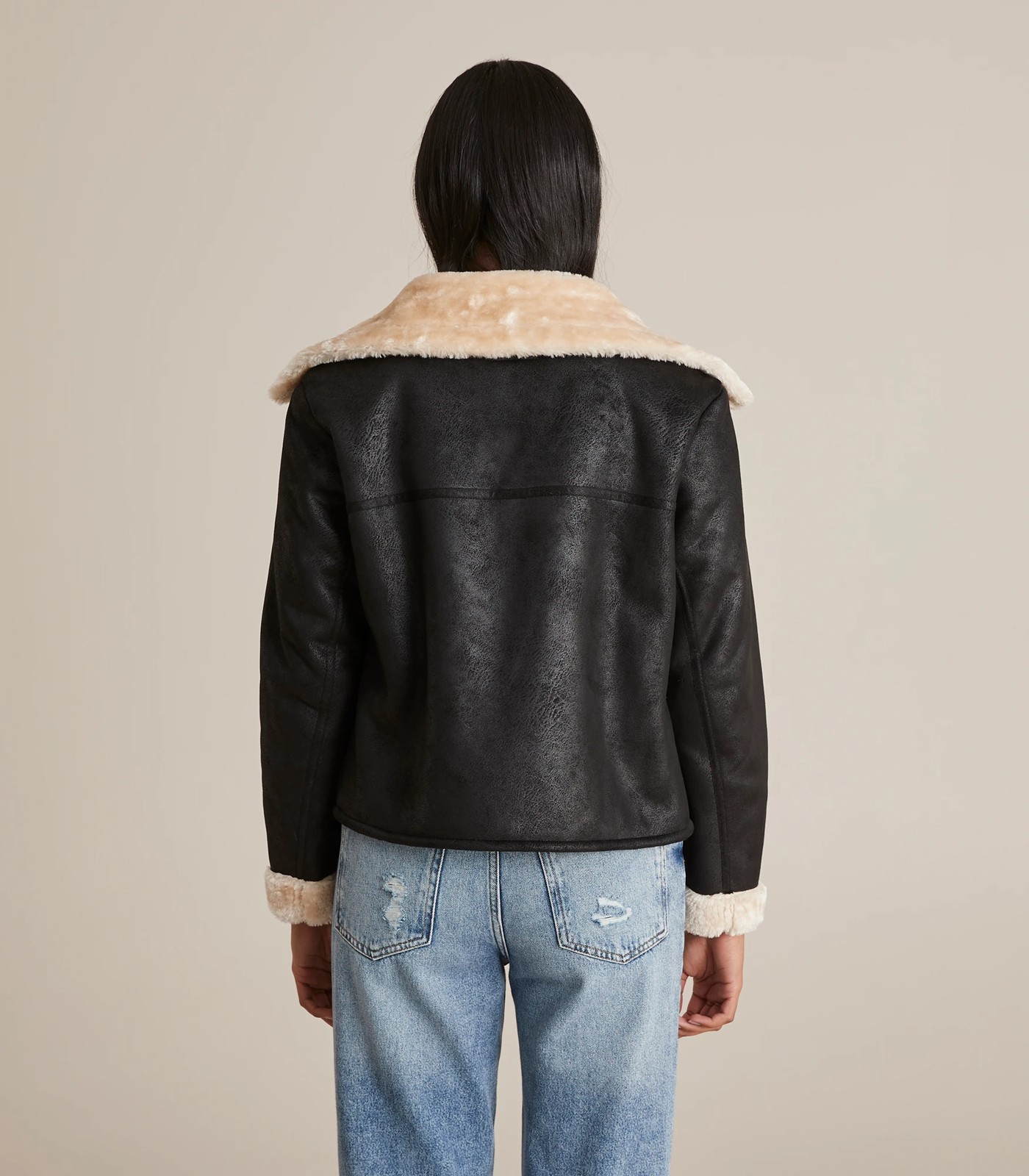 Faux Fur Lined Buckle Detail Aviator Jacket Very well made.