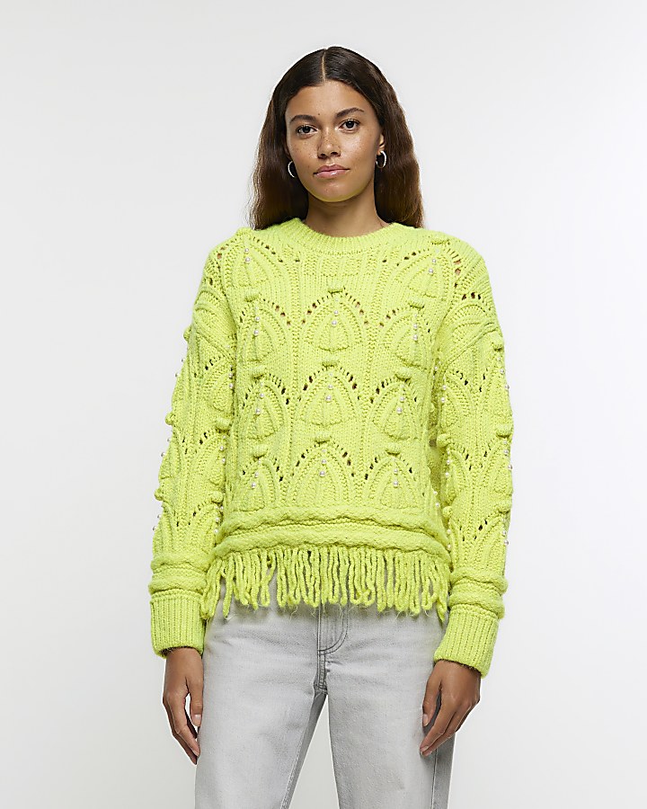 Buy Styli Yellow Cable Knit Square Neck Regular Fit Sweater online Very well made.