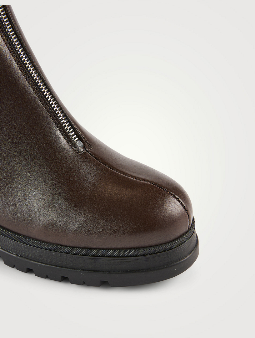 Black Chunky Zip Front Leather Ankle Boots Very well made.