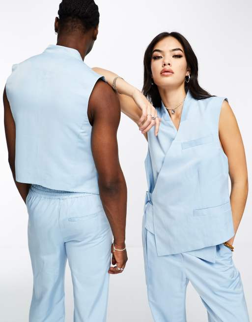 IIQUAL unisex wrap waistcoat in baby blue part of a set Very well made.