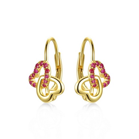 Guili Kids Teen s Sterling Silver 14k Yellow Gold Plated with Ruby Double Heart Halo Drop Leverback Earrings Very well made.